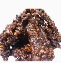 This is a traditional sweet of Ghizer, made from walnut, dried apricots, almonds strung together, dipped in reduced grape-juice syrup, and dried to form chewy necklace candies: Rich, sweet-and absolutely a winter staple.